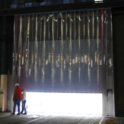 Porta Flex door em PVC com fechamento automático, através de mola helicoidal sobrepostas em eixos de aço, estrutura metálica em perfil vertical e horizontal em chapas de Aço inox ou Galvanizadas.