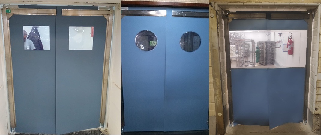 As portas flexíveis vai e vem Flex door da POWER DOOR são usadas em supermercados, hospitais, escolas, cozinhas, restaurantes e muitos lugares. As portas protegem o ambiente contra sujeiras, insetos e pragas, ajudam a manter limpo o ambiente, impede a proliferação de bactérias e mantém a temperatura ambiente.